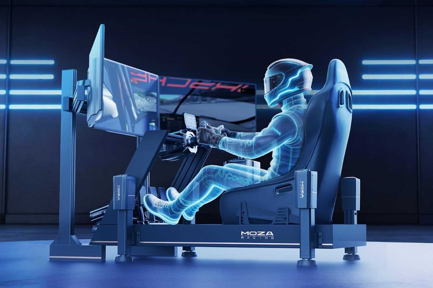 No que diz respeito ao software, a MOZA apresenta o Racing Lab AI Coach. Normalmente, analisamos o nosso desempenho utilizando software de telemetria complexo, como o MoTeC, ou ferramentas de análise externas, como o Track Titan. O MOZA dá um passo em frente, explorando a Aprendizagem por reforço.